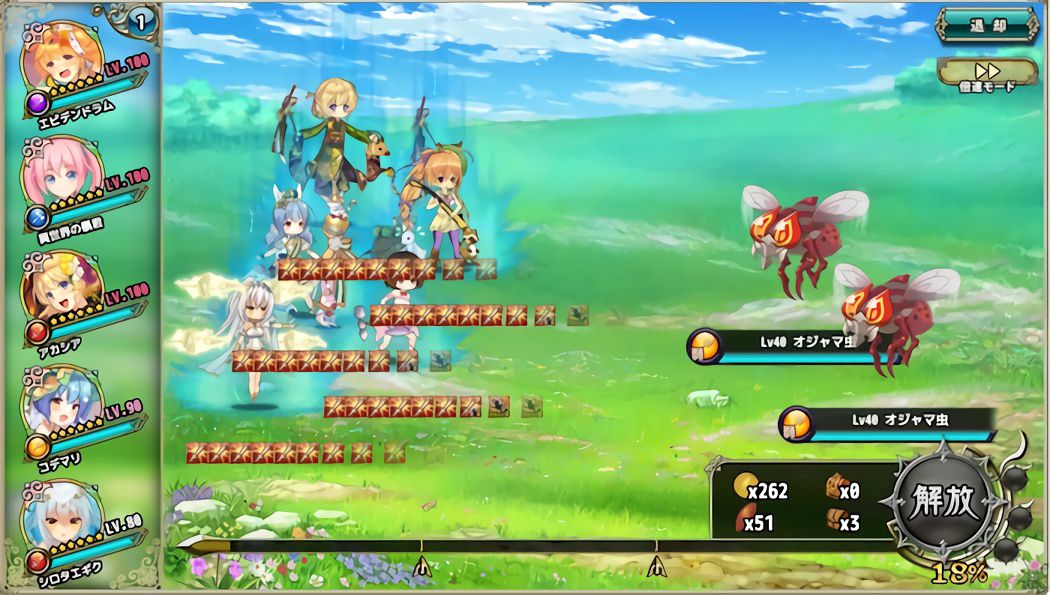 • キャラクター達の「攻撃」「スキルの使用」が自動で行われ、必殺技である『ソーラードライブ』の発動の有無だけプレイヤーが選択する