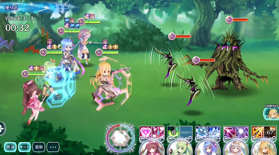 • 基本的に自動でバトルが進行するが、プレイヤーがキャラクターの使用スキルの種類を指定することも可能